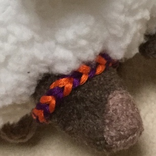 一応糸を3/4の太さにして、更にオレンジの糸の方を細めにしました。どう頑張ってもムリな部分は諦めたけど概ね満足。