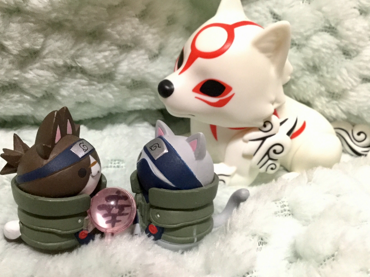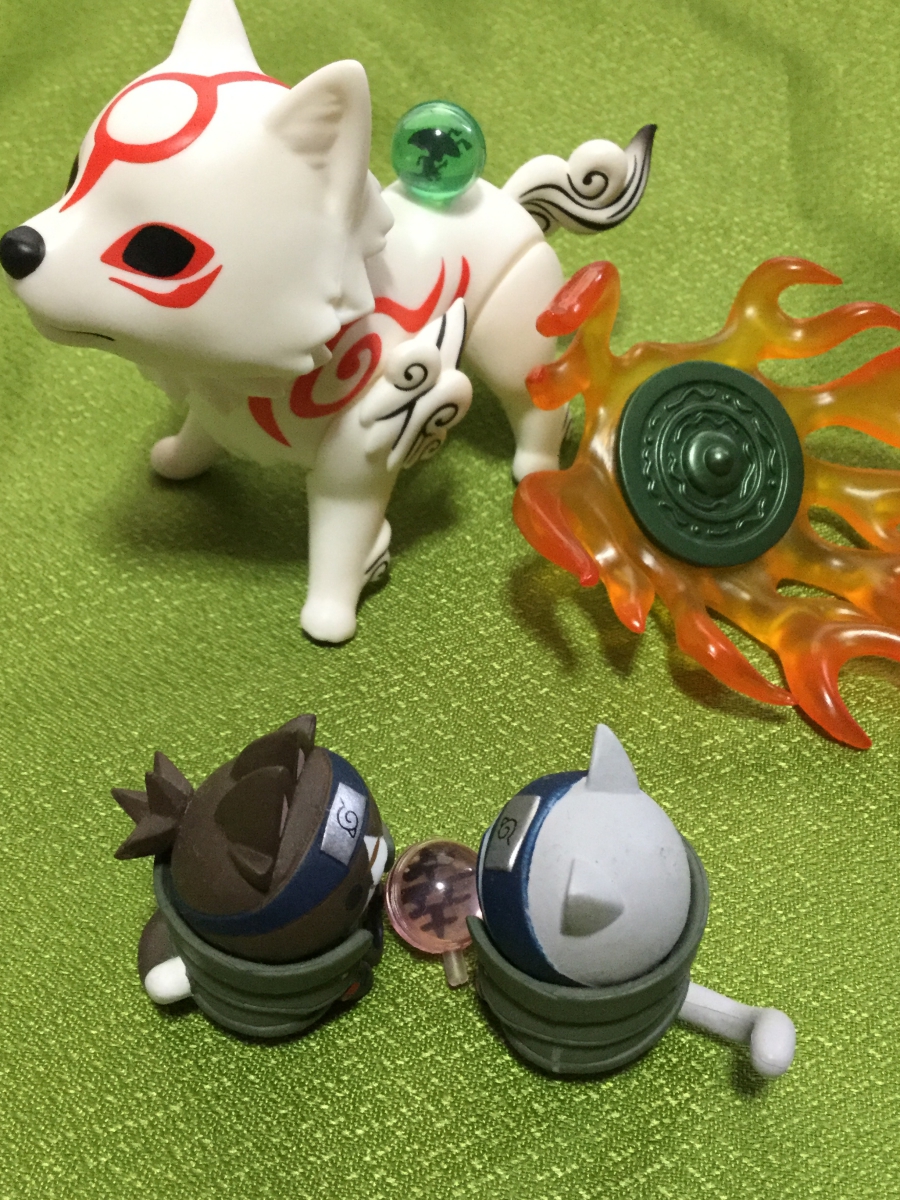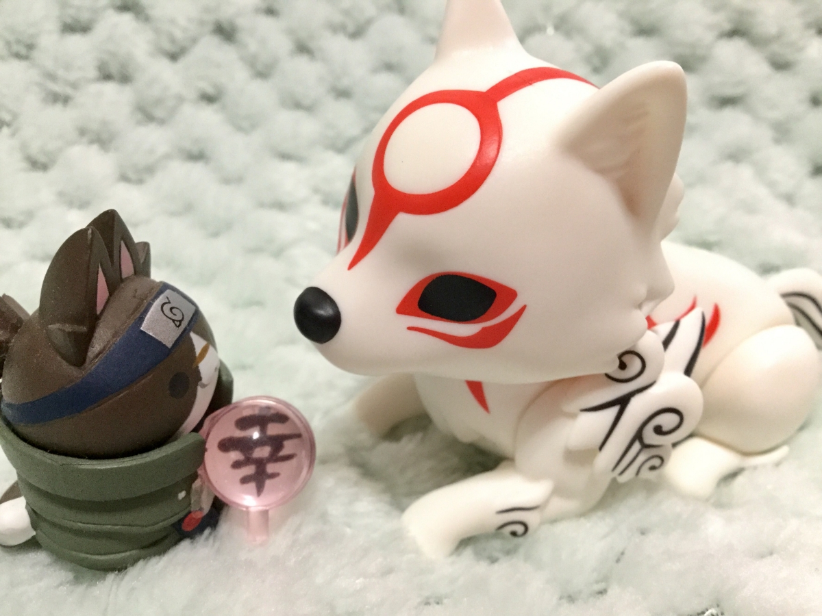 本当は背中に鏡(真経津鏡/まふつのかがみ)が付くんですけど、どうしても付けられなくて(突起が穴に嵌まらないし、押し込もうとすると滑る)諦めました。