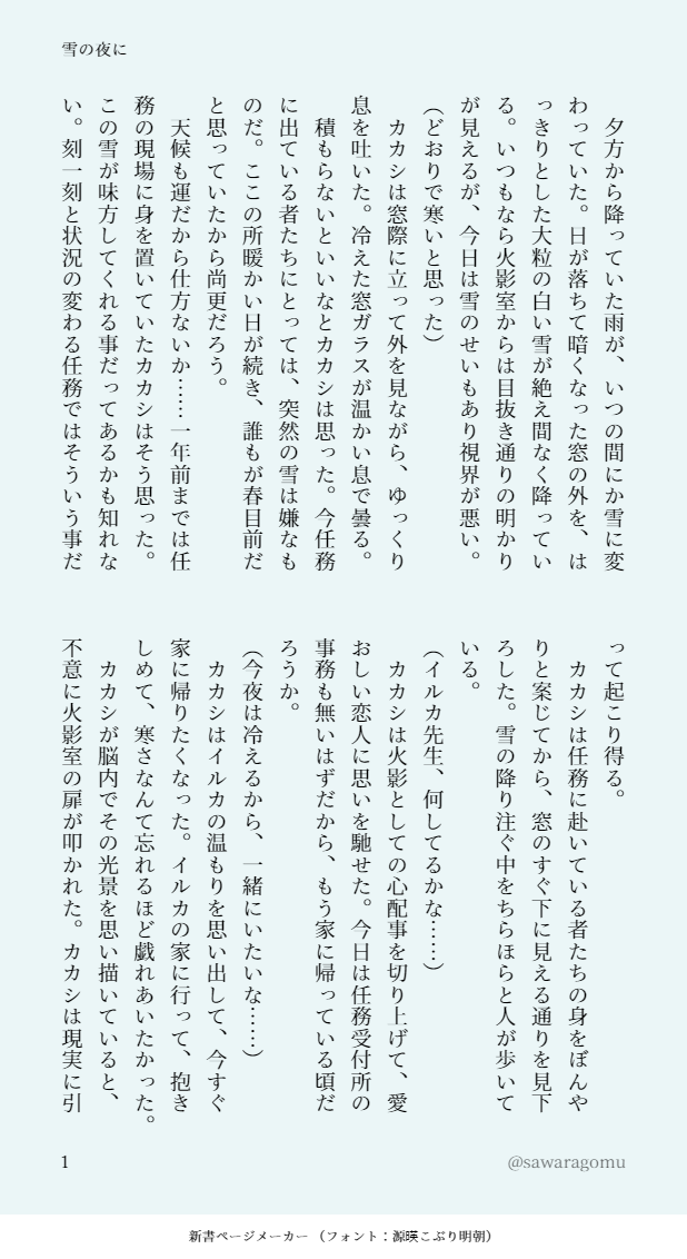 雪の降る夜に、イルカ先生が火影室へ行く話。もちろんイチャイチャします。