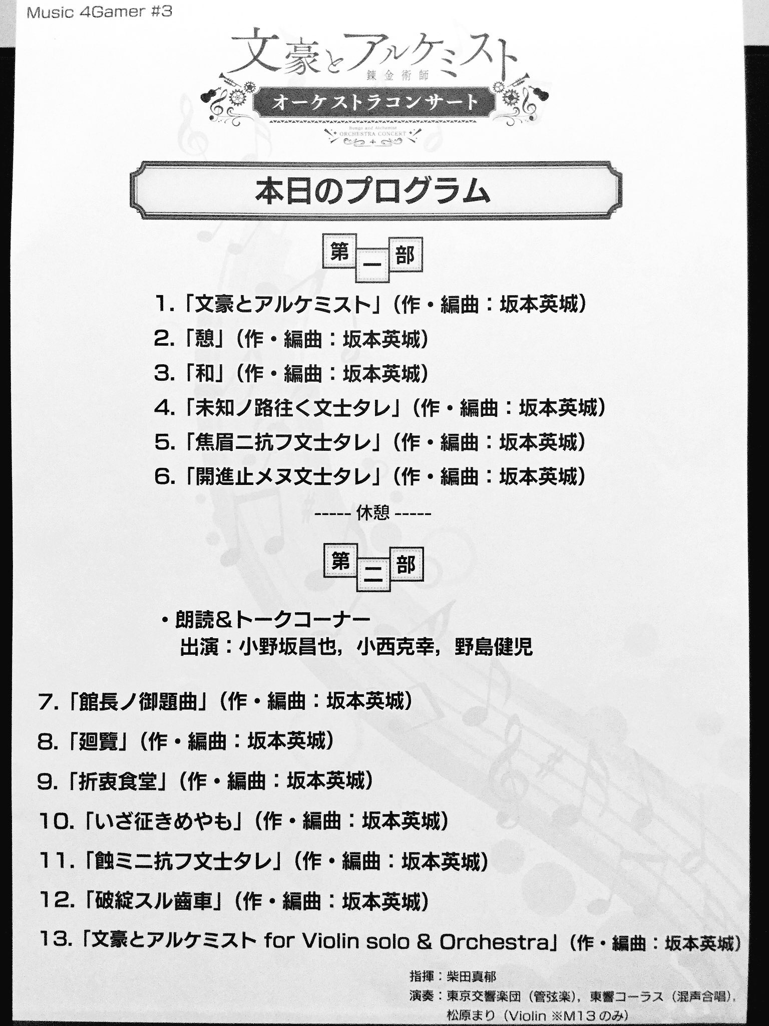 今回はFF7の曲だけの公演。マーチ好きの私としては、ルーファウス歓迎式典を吹奏楽で聞けた事が嬉しい。それとケット・シー目当てで行ったし。(笑)