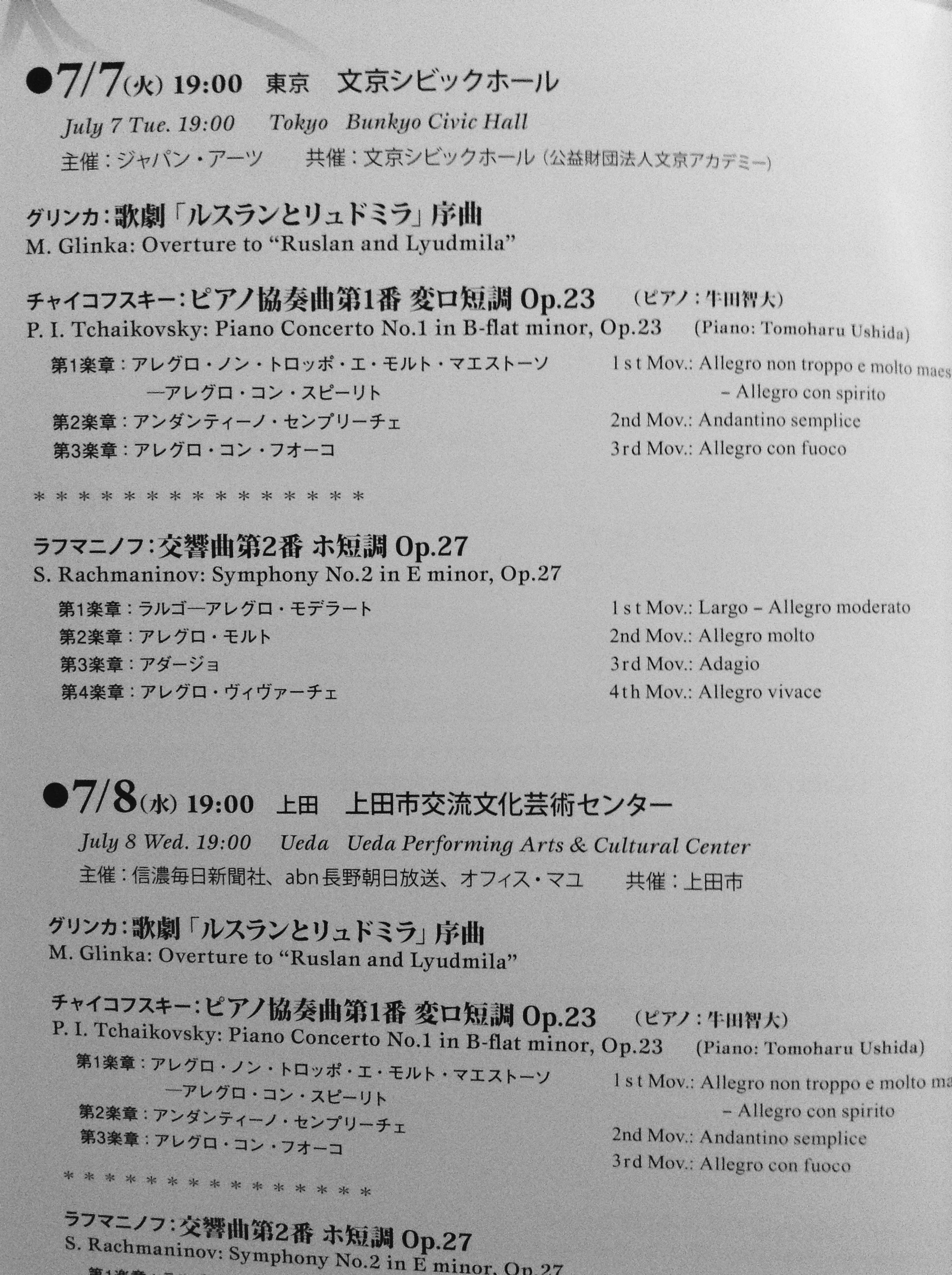 パンフ読んで思ったのは、作曲者の出身地や作曲された国じゃないと分からない解釈ってのがあるんだなあと…思った。そりゃあそうだろう。歴史的背景もあるだろうし。環境や日常だって全然違うはずだし。ロシア音楽は特にそれが強いのかなと、ふと思いました。
