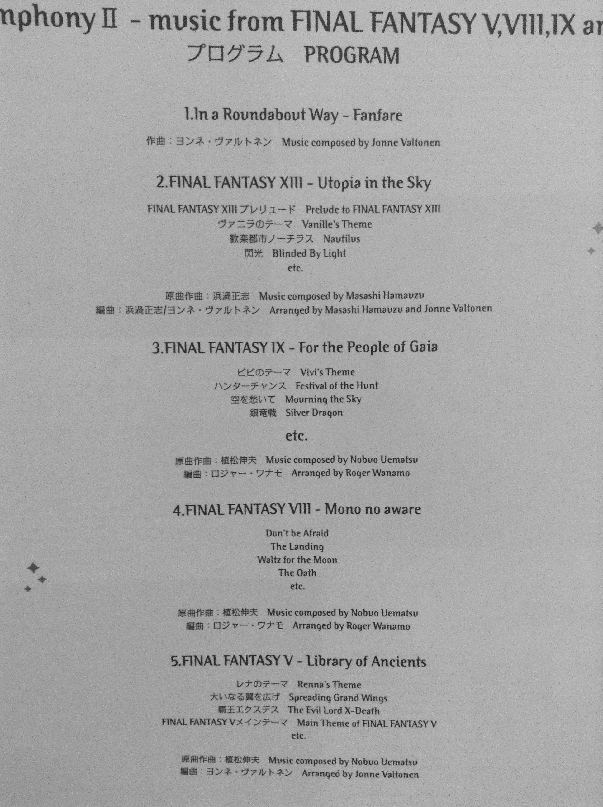 Final SymphonyⅡ music from Final Fantasy V,VIII,IX and XIII