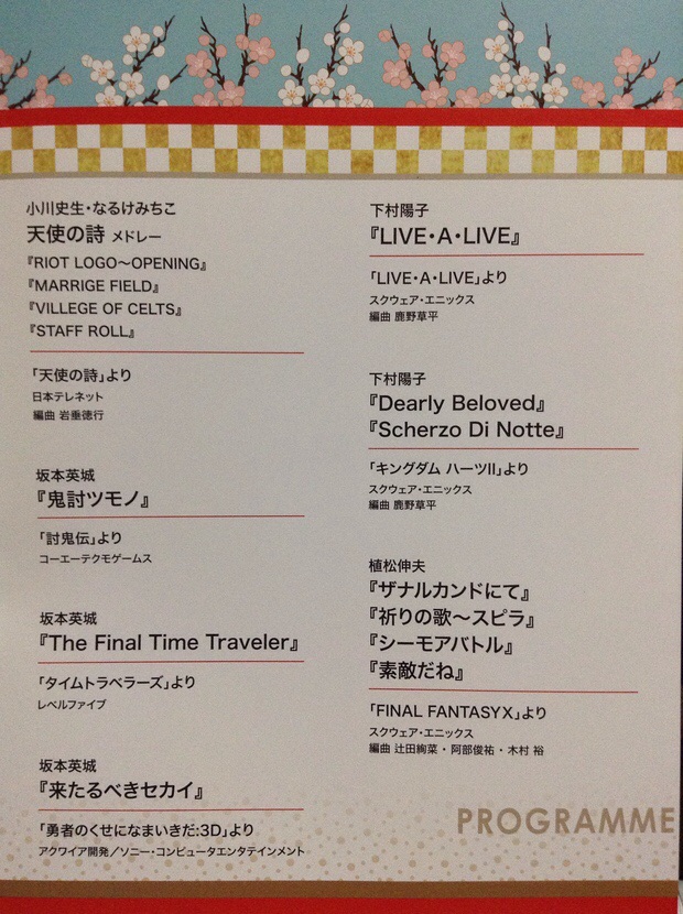 プログラムは無かったので(売ってもなかったと思う)、曲は今度調べて書きます。