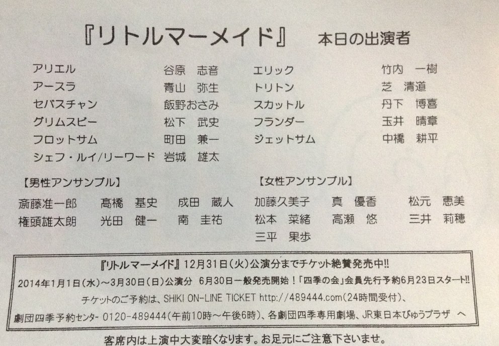 劇団四季のリトルマーメイドを見て来ました。