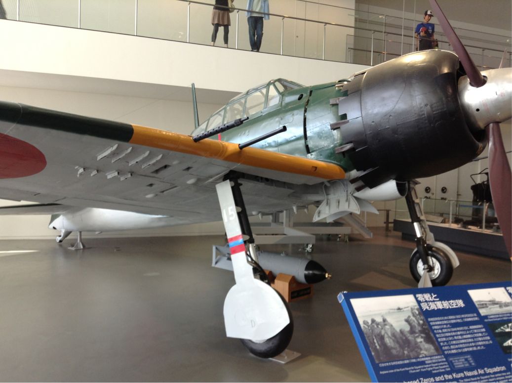 ゼロ戦。翼の表裏で色が違うんですね。知らなかった。理由はすぐに察しがついたけど・・・いや、昔聞いたことあったかな。でも日の丸描いてあったらすぐバレるよね?