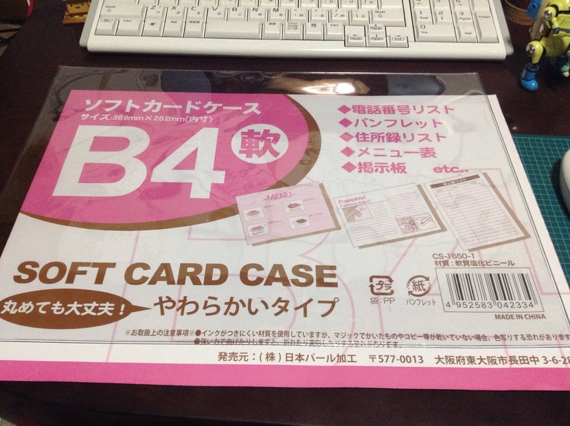 ソフトカードケースを解体して、B4サイズのビニールシートが2枚分取れます。それ1枚で、写真のオビツ用が作れます。ビニールはちょっと余る。