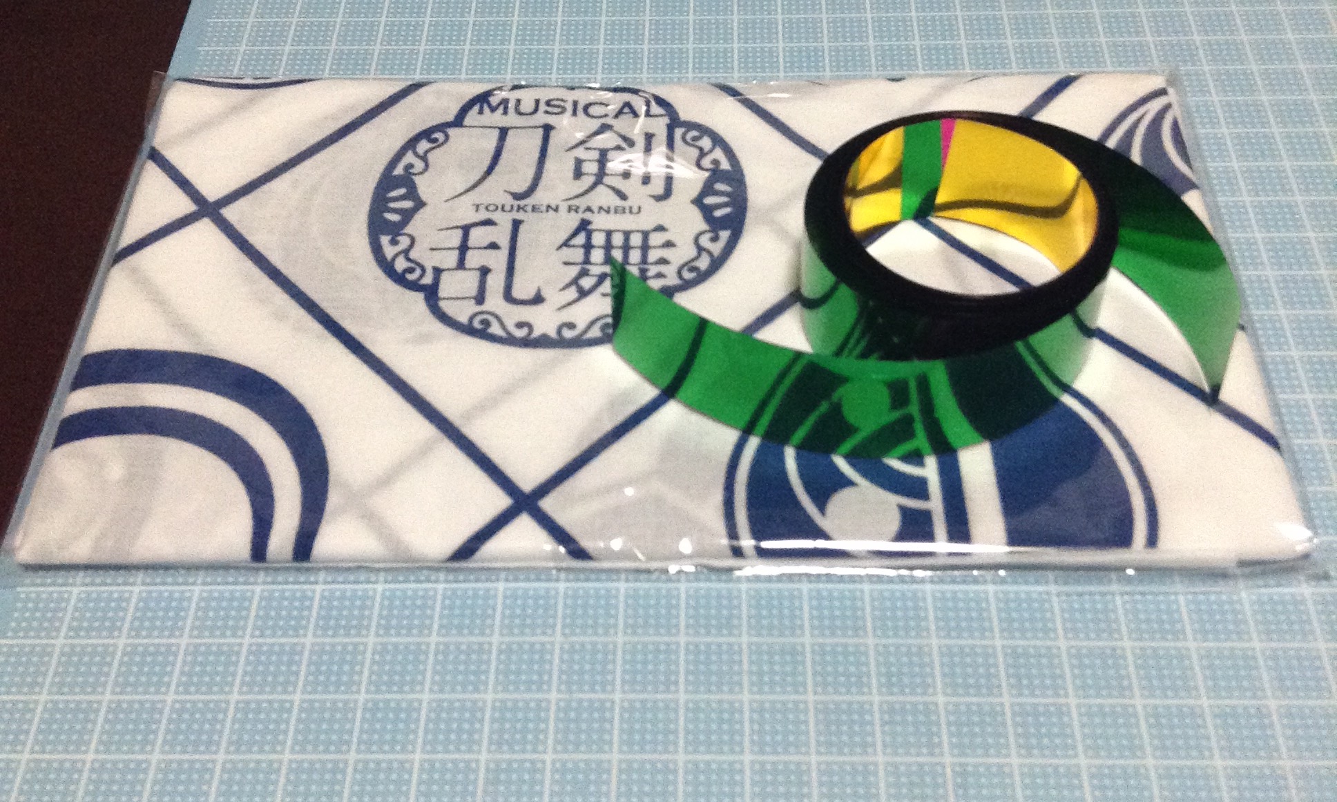 おみやげの手拭いと、ライブ終盤に客席に降り注いだテープ。↓