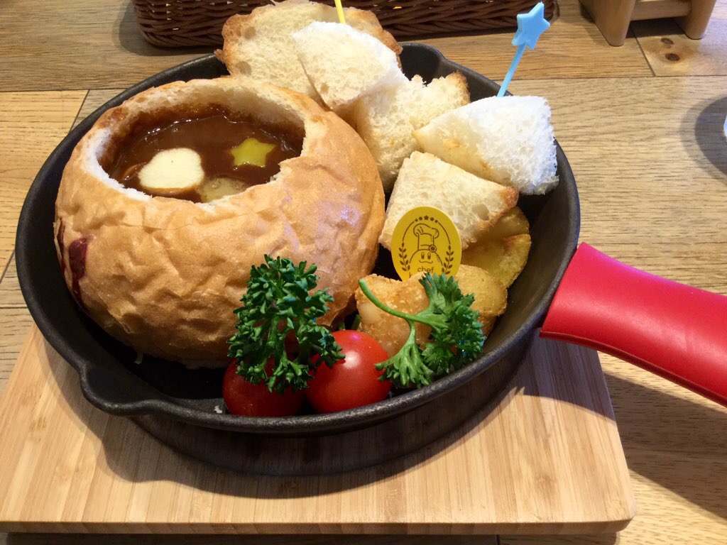 フライパンパスタが品切れだったのでパンシチューを注文。