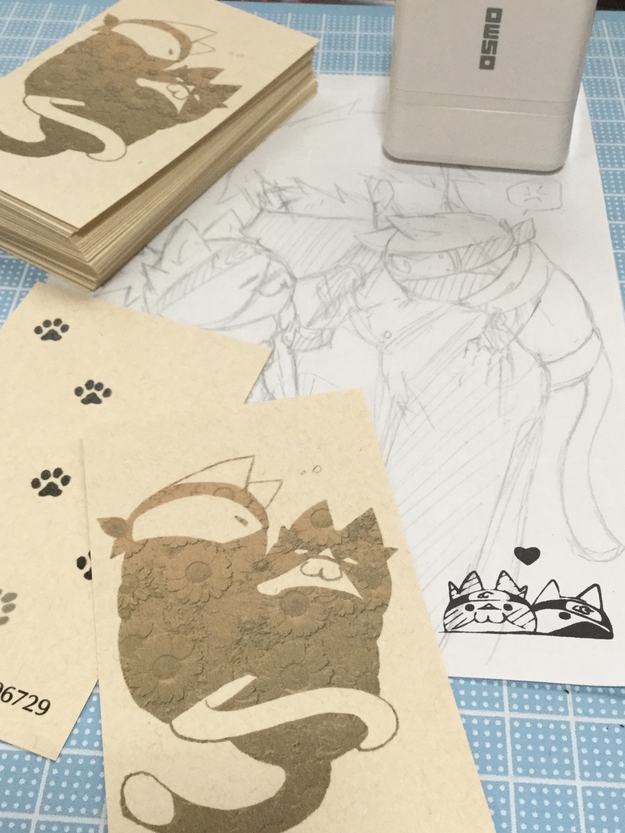 淡い色だと印刷出ないかも…と思って濃いめにデータ作ったらちょっと濃過ぎました。紙の所為なのか木質感ある。これはこれでいいかな。