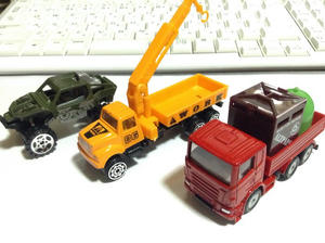 昨日とは別の雑貨屋行ったら沢山種類があったので、その中から一つ選んで来ました。リサイクル品回収車。荷台に載ってる茶色いのが古紙回収ボックスで、緑のがガラスビン用です。(と書いてある)