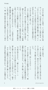 ああ、そうだ。文字数で思い出した。章ごとの分量に結構差が出てしまってるんだけど、やっぱり均等にした方がいいのかなぁ。あと3千文字x2くらい書くと(見た目が)ちょうどいいんだけど。でも私の自己満だしな~。そもそもが自己満で書いてるんだから、好きにしろって感じだよね。悩む~。